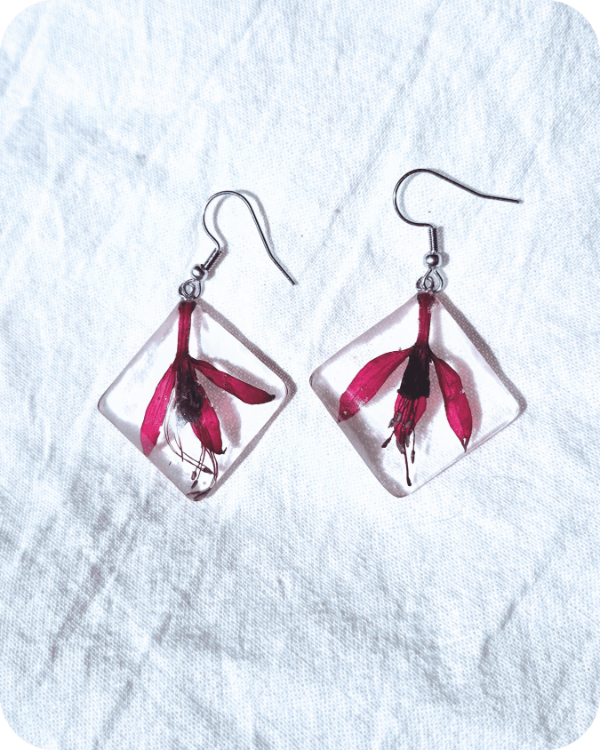 Estos aros albergan una flor real, recolectada a mano con especial cuidado hacia la planta y sus futuras flores.