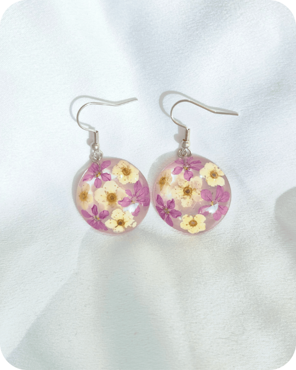Estos aros albergan flores reales, recolectadas a mano con especial cuidado hacia la planta y sus futuras flores.