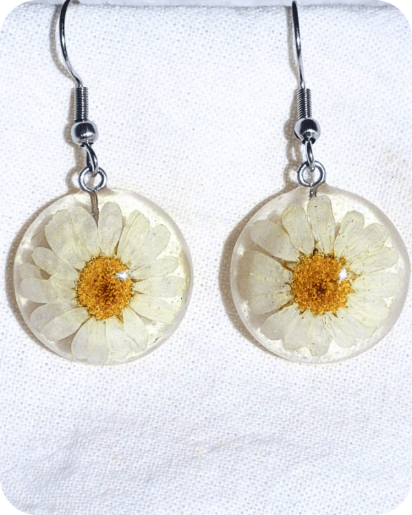 Estos aros albergan una flor real, recolectada a mano con especial cuidado hacia la planta y sus futuras flores.