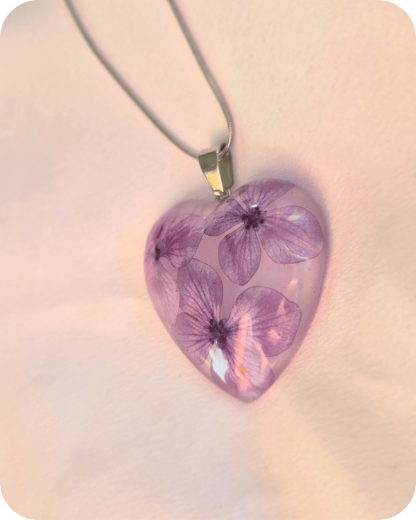 Este dije alberga una flor real, recolectada a mano con especial cuidado hacia la planta y sus futuras flores.