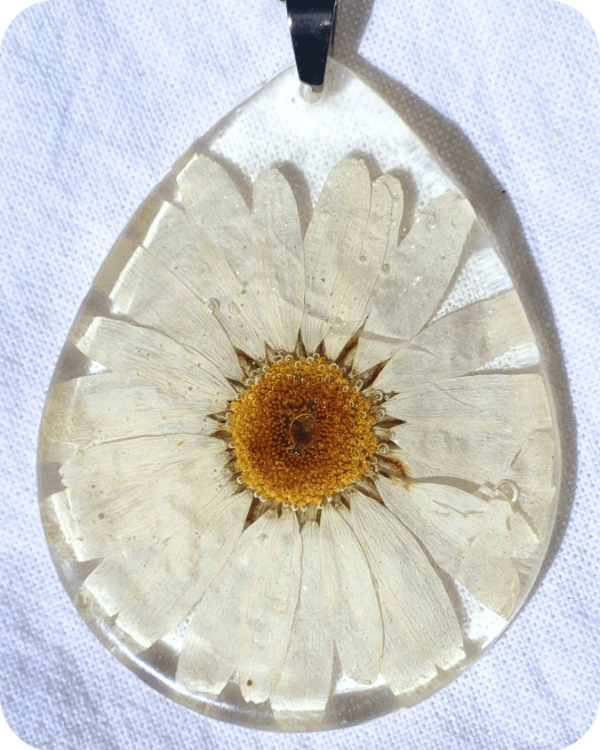 Este dije alberga una flor real, recolectada a mano con especial cuidado hacia la planta y sus futuras flores.
