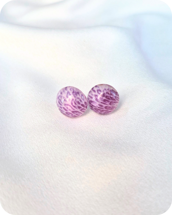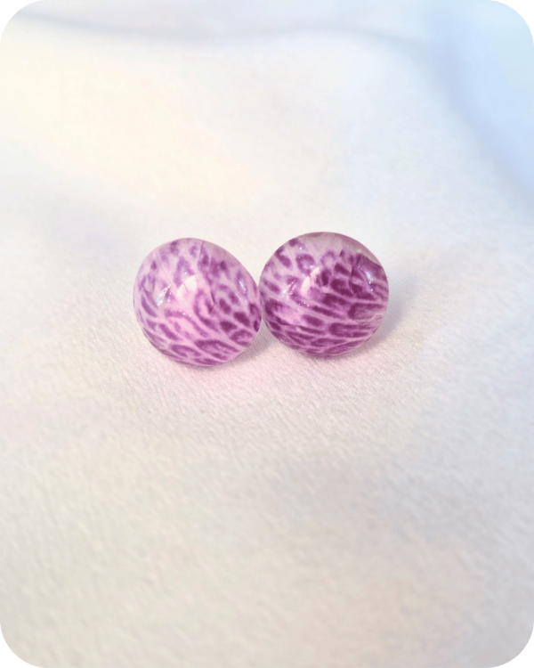 Estos aros albergan una flor real, recolectada a mano con especial cuidado hacia la planta y sus futuras flores.
