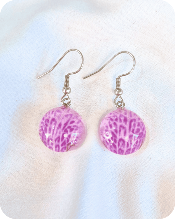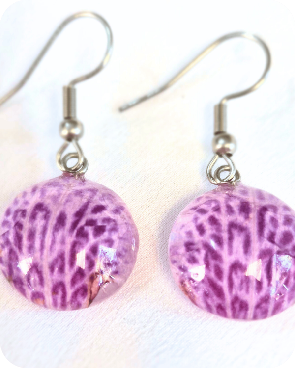 Estos aros albergan una flor real, recolectada a mano con especial cuidado hacia la planta y sus futuras flores.