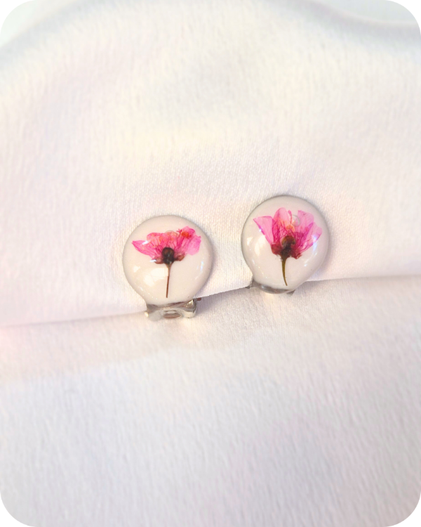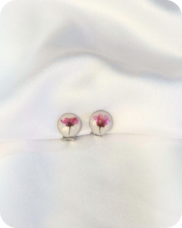 Estos aros albergan una flor real, recolectada a mano con especial cuidado hacia la planta y sus futuras flores.