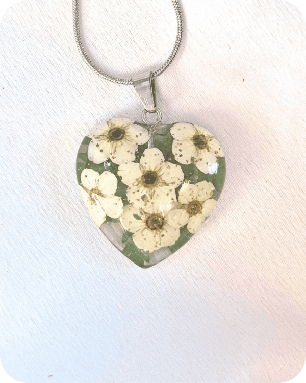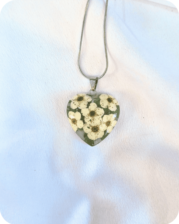 Este dije alberga una flor real, recolectada a mano con especial cuidado hacia la planta y sus futuras flores.