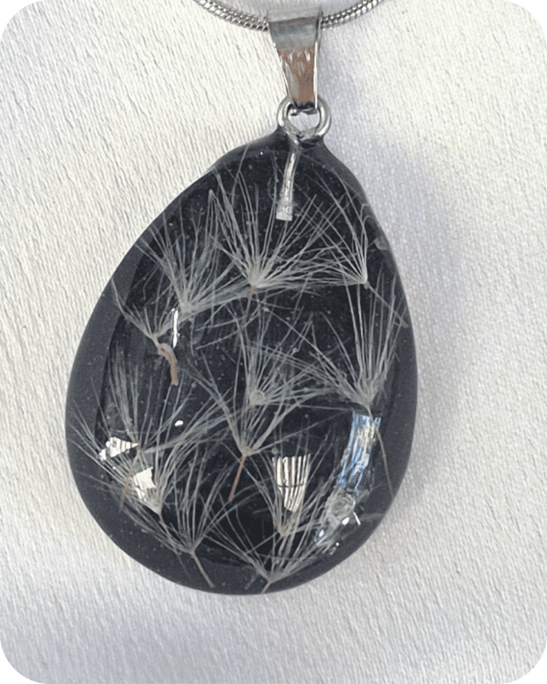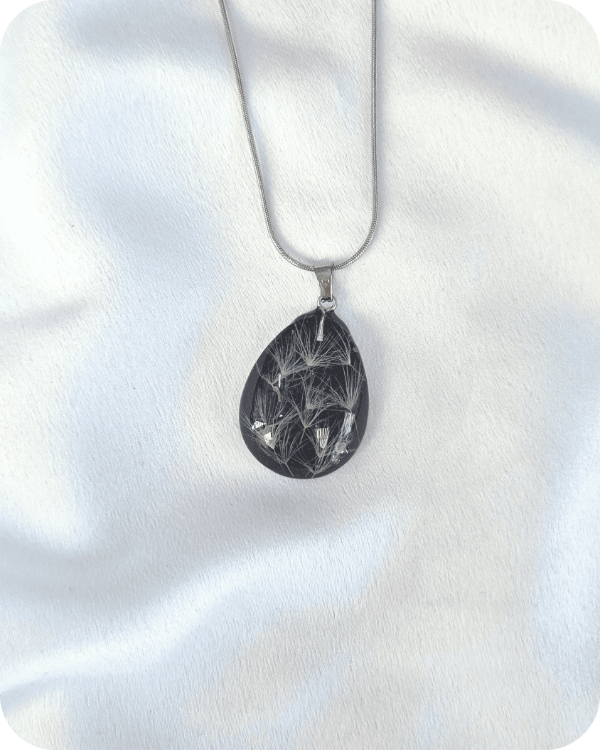 Este dije alberga una flor real, recolectada a mano con especial cuidado hacia la planta y sus futuras flores.