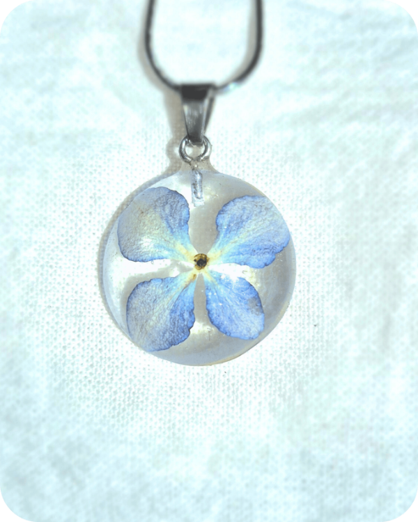 Este dije alberga una flor real, recolectada a mano con especial cuidado hacia la planta y sus futuras flores.