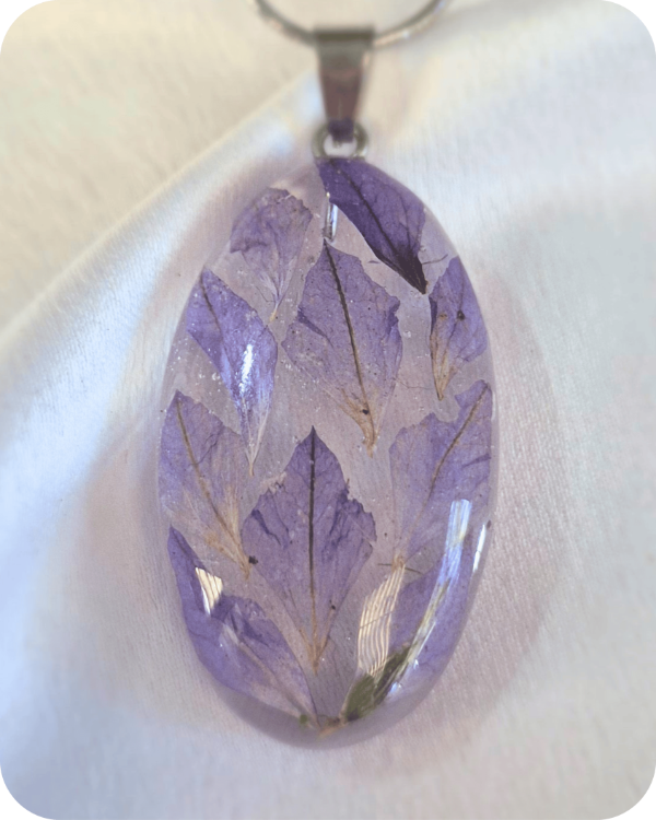 Este dije alberga una flor real, recolectada a mano con especial cuidado hacia la planta y sus futuras flores.