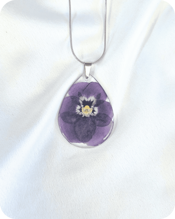Este dije alberga una flor real, recolectada a mano con especial cuidado hacia la planta y sus futuras flores.