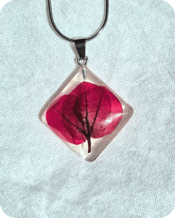 Este dije alberga una flor real, recolectada a mano con especial cuidado hacia la planta y sus futuras flores.