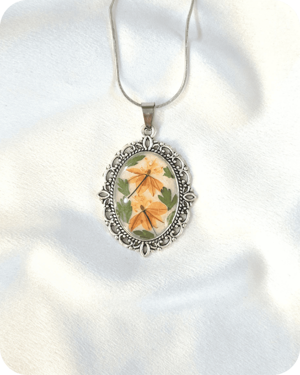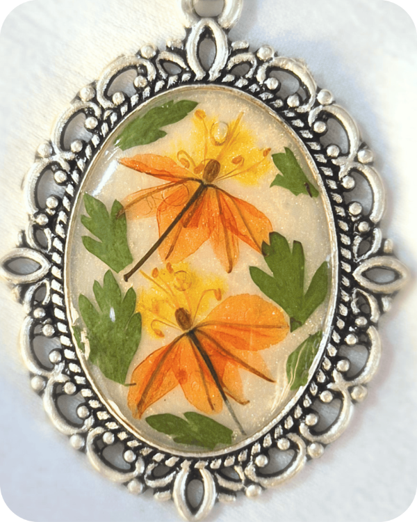 Este dije alberga una flor real, recolectada a mano con especial cuidado hacia la planta y sus futuras flores.