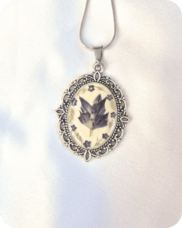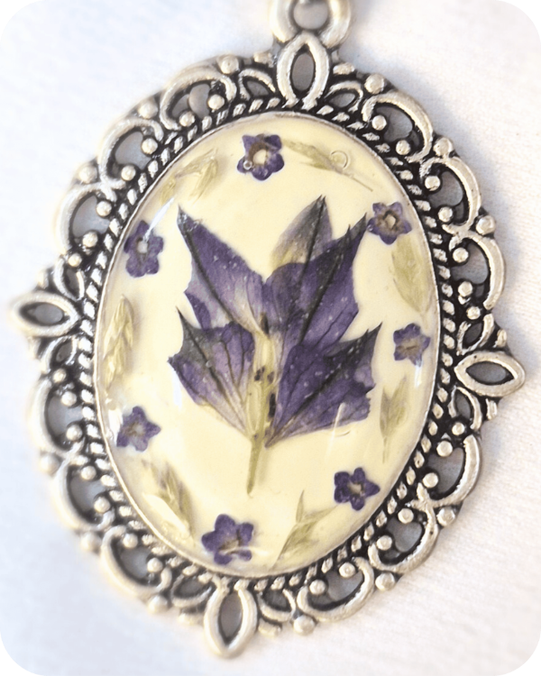 Este dije alberga una flor real, recolectada a mano con especial cuidado hacia la planta y sus futuras flores.